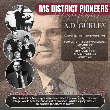 Albert Dewey Gurley, known by all his peers as simply, A. D. He was born August 25, 1898 in Decaturville, Tennessee. His parents were Methodists, and early in life he was "sprinkled" into the Methodist Church.